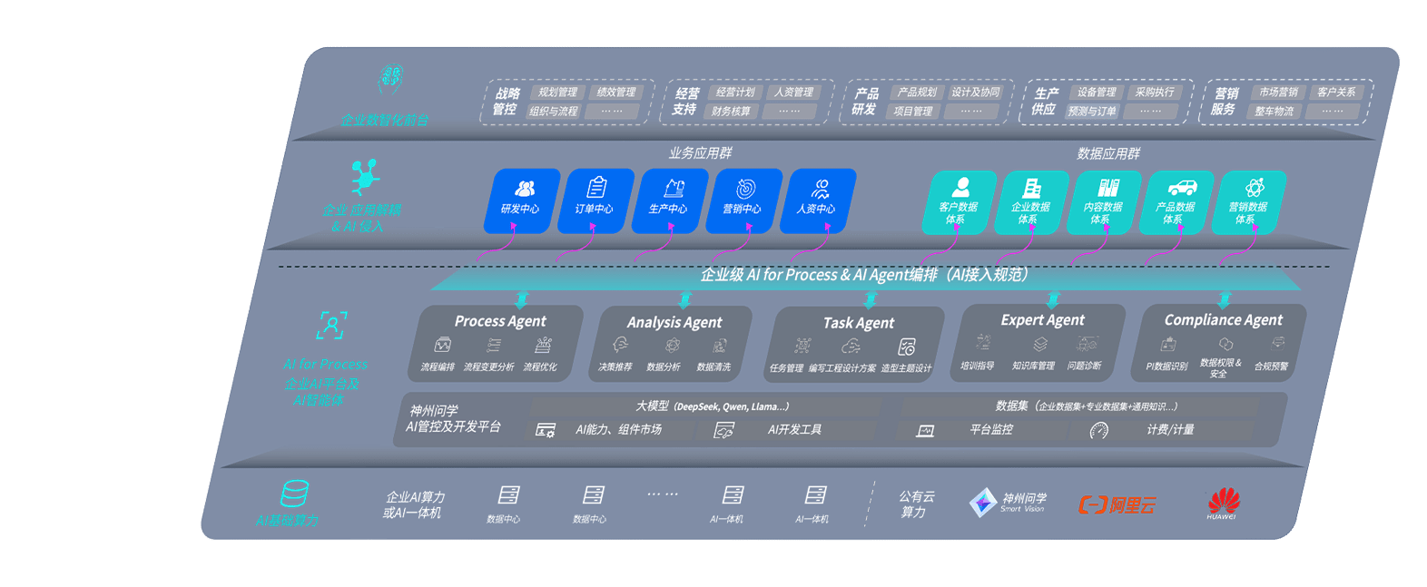 滕博会问学智车解决方案是一套基于AI技术的汽车行业智能化系统,,,,覆盖从底层算力到顶层AI应用的全栈方案。。。方案由算力层、、、、模型层和应用层组成:算力层,,,方案支持多种一体机配置,,,具备云端灵活部署、、多云适配以及动态优化计算资源的能力;模型层,,,,滕博会问学平台版提供了企业级AI应用一站式构建与管理平台,,支持基于后训练强化技术的汽车企业专属模型的训练、、评测和运营;应用层,,,,滕博会问学DeepSeek版提供包括超级员工、、智能招采、、、、智能营销、、、智能客服、、、AI for BI等一系列解决方案,,可助力汽车行业实现数字化转型,,,让管理更智能、、、响应更敏捷。。。。